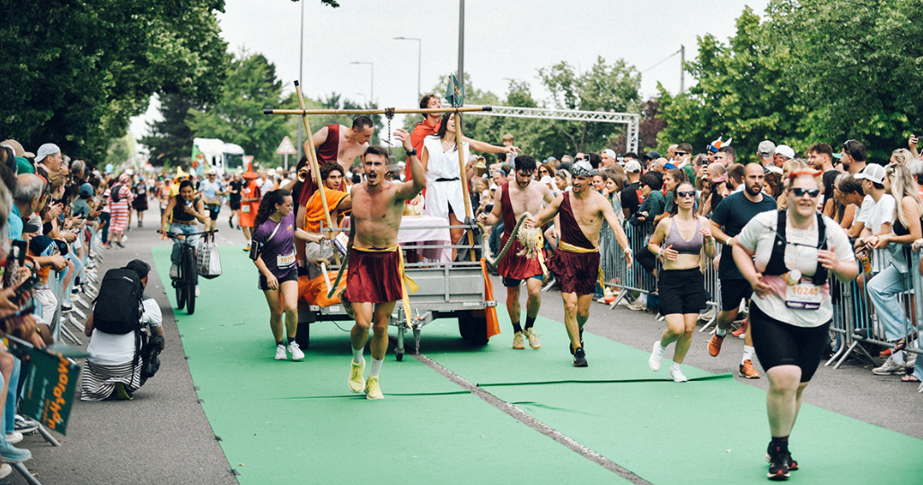 Tout le monde ne sera pas là pour « rigoler ». Non mais ! Parmi les 8000 chanceux, il y aussi celles et ceux qui viennent pour la performance. Et cette quatrième édition devrait offrir un beau spectacle avec de beaux champions. Devant, ça devrait aller très vite pour lever la chope de la victoire. Les records de l’épreuve sont d’un bon niveau. Toni Caporale en 2h30’40 (2025) et Marion Rousseau en 3h13’08 (2024) sur marathon, Igor Bougnot en 1h10’45 (2024) et Laurie Maleysson en 1h22’00 sur semi-marathon (2025), et Julien Rabaca en 31’19 (2025) et Anne-Sophie Begon en 35’21 (2023) sur 10 km, ont été les plus rapides. L’affiche de l’édition 2026 a été imaginée et dessinée par l’artiste Matthieu Forichon (Des Bosses et Des Bulles).