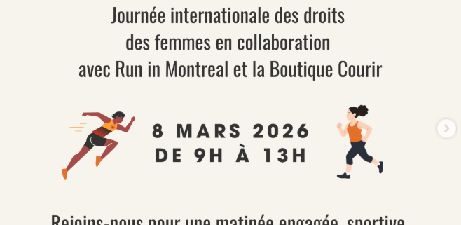 Le 8 mars prochain, à l’occasion de la Journée internationale des droits des femmes, rejoins-nous pour une matinée engagée, sportive et inspirante au cœur de Montréal.